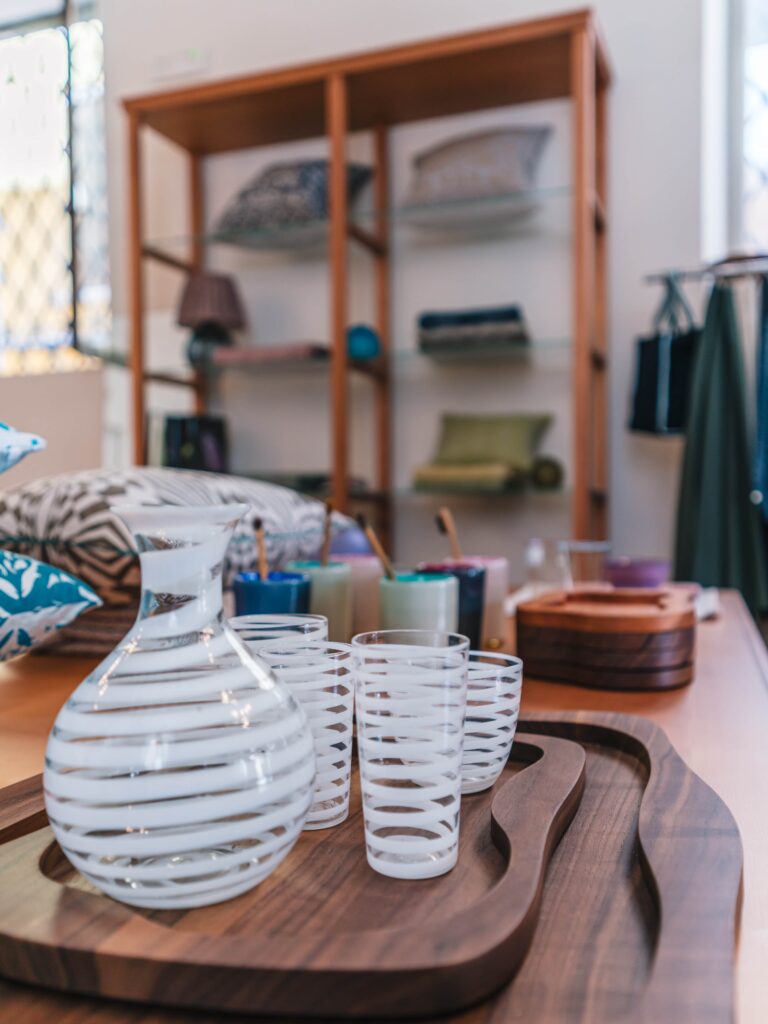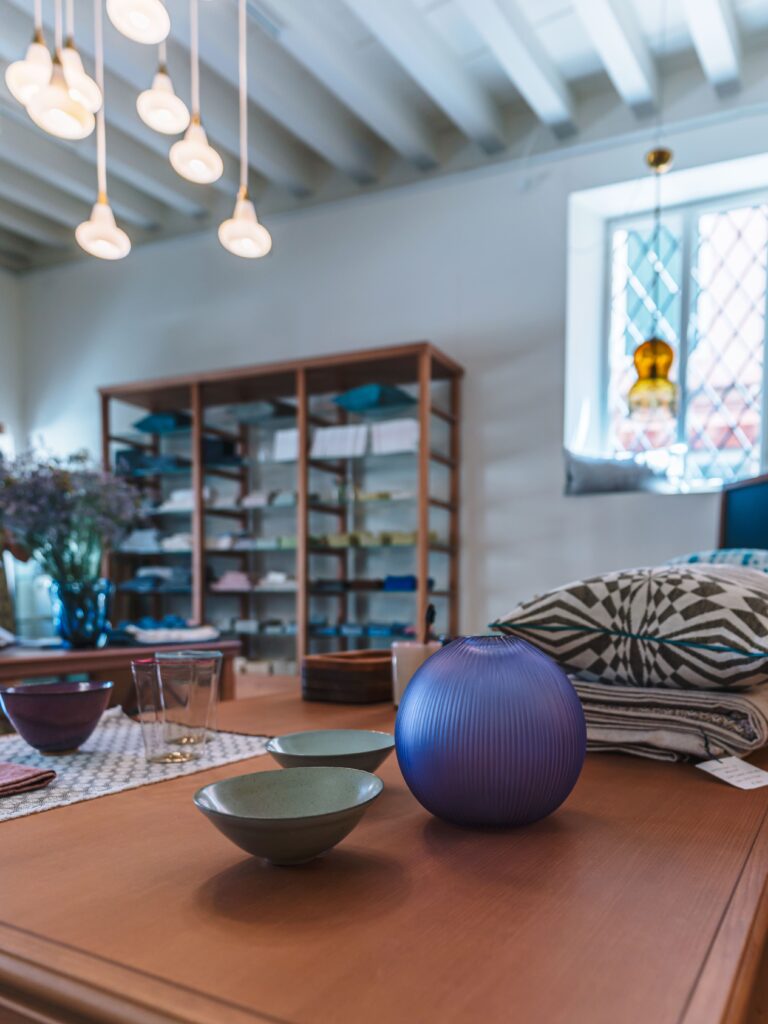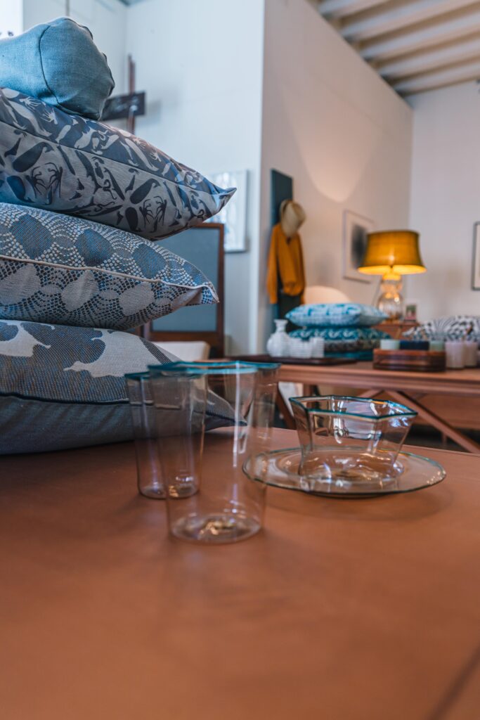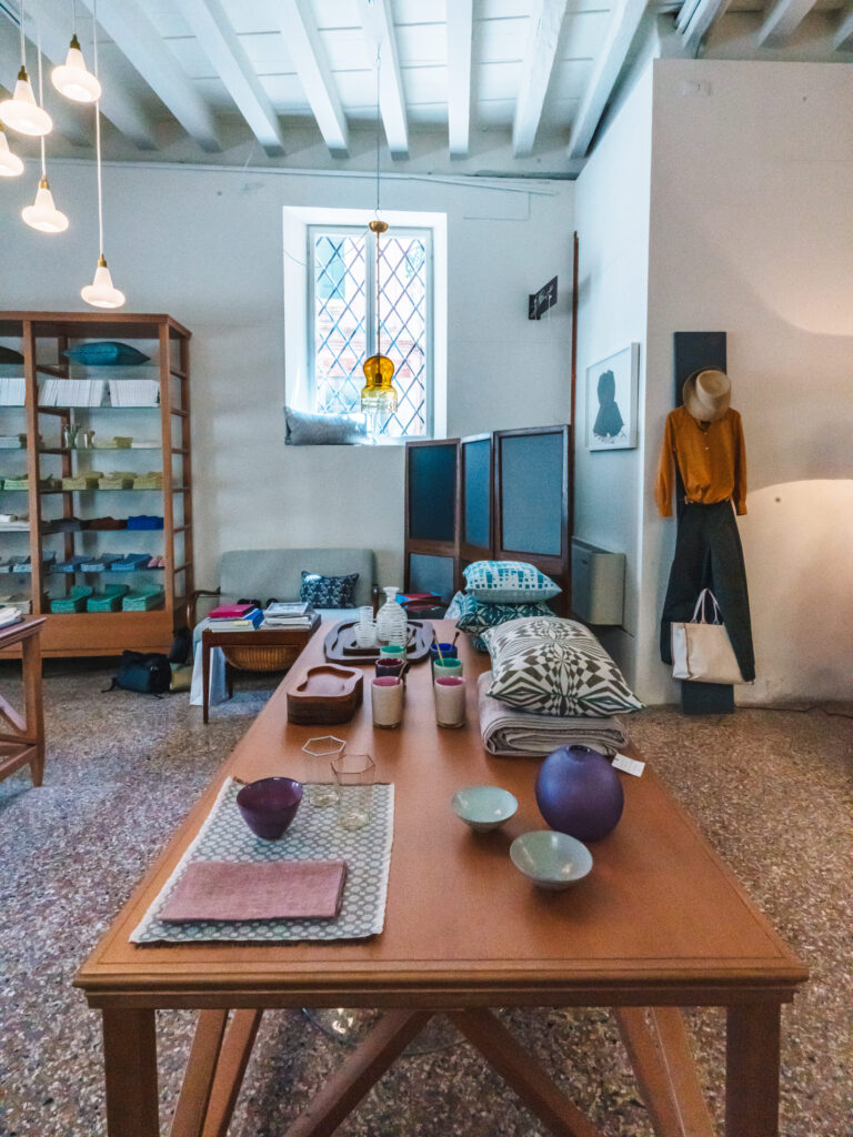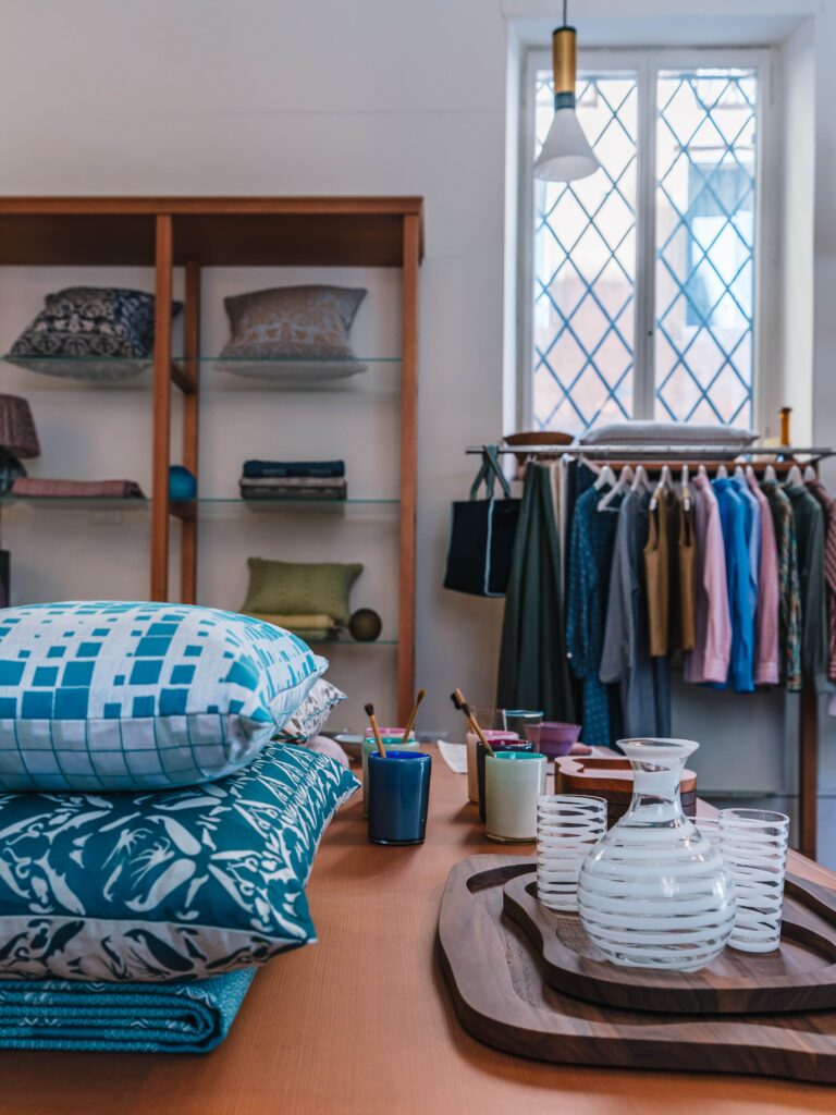 Ceramiche, tessuti a telaio, vasi in vetro di Murano, cuscini, borse, abiti, artigianato tradizionale e colori contemporanei, stile inconfondibile e bellezza unica.